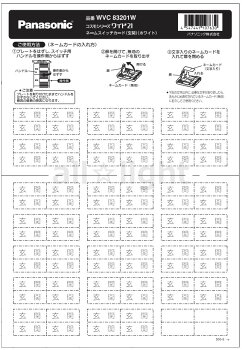 ネームスイッチカード ネームスイッチカード2型 ネームスイッチカード3型 WVC8321Wホワイト WVC8321G利休色 WVC8322WKホワイト WVC8322FKベージュ WVC8322GK利休色 WVC8322Hグレー WVC8323Wホワイト ネームスイッチカード(同一ネーム) マンションなどで、同一ネームカードが大量に必要な場合には、下記のネームカードをご使用ください。