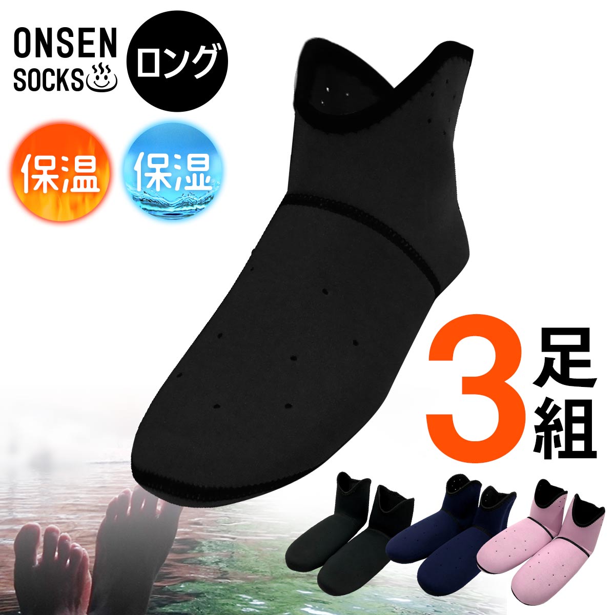 ロング3足組 あったかグッズ 暖かい 靴下 発熱 冷え取りくつした 保温 冷え 防寒対策『温泉ソックス』リバーシブル ルームシューズ メンズ レディース かかとケア 保湿